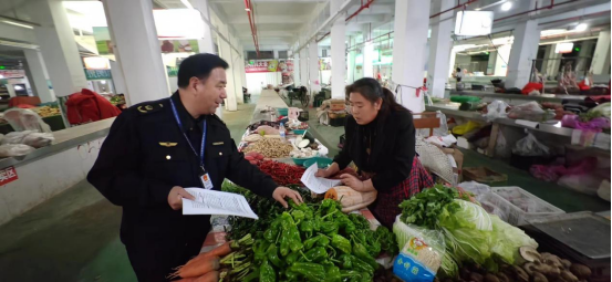 宣傳中,執(zhí)法人員逐戶逐個攤位發(fā)放《食用農產品市場銷售質量安全注意事項》宣傳單,讓經(jīng)營者對照要求自查整改。宣傳引導市場商戶應當在經(jīng)營場所醒目位置懸掛有效證照,商品實行明碼標價,使用檢定合格的計量器具;保持銷售場所環(huán)境整潔,與有毒、有害場所以及其他污染源保持適當?shù)木嚯x,防止交叉污染;銷售生鮮食用農產品,不得使用對食用農產品的真實色澤等感官性狀造成明顯改變的照明等設施誤導消費者對商品的感官認知;配備相應的防蠅、防塵等設備;擺放儲存要離墻離地。