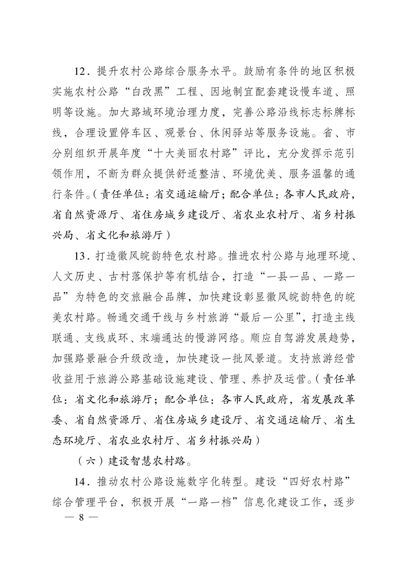 安徽省人民政府辦公廳印發(fā)關(guān)于開(kāi)展新一輪“四好農(nóng)村路”建設(shè)實(shí)施方案(2023—2027年)的通知(皖政辦秘〔2023〕62號(hào))