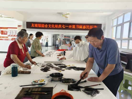 為傳承和弘揚(yáng)中華優(yōu)秀傳統(tǒng)文化,豐富群眾精神文化生活,7月1日上午,龍城鎮(zhèn)文化站分別在站內(nèi)二樓和三樓舉辦慶七一書畫筆會活動。
