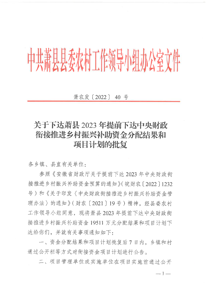 馬井鎮(zhèn)關(guān)于下達蕭縣2023年提前下達中央財政銜接推進鄉(xiāng)村振興補助資金分配結(jié)果和項目計劃的批復(fù)