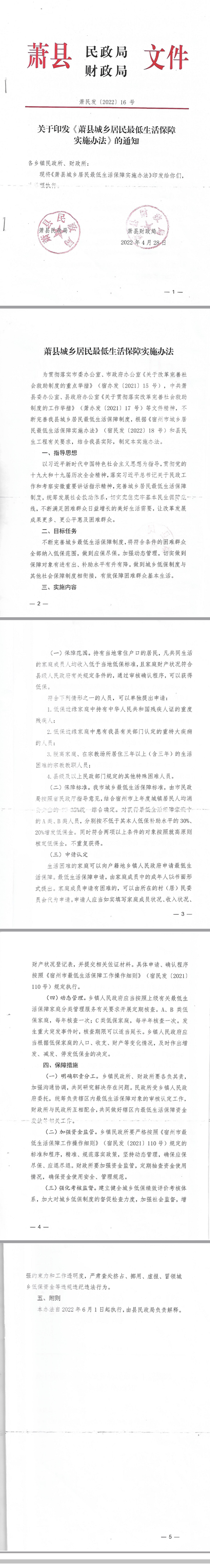 【蕭縣】關(guān)于印發(fā)《蕭縣城鄉(xiāng)居民最低生活保障實施辦法》的通知