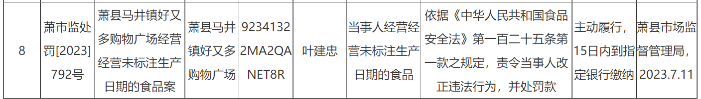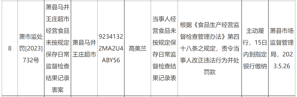 馬井鎮(zhèn)2023年第三季度食品生產(chǎn)經(jīng)營(yíng)行政處罰案件