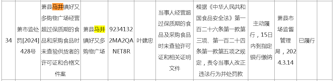 馬井鎮(zhèn)2024年第一季度食品生產(chǎn)經(jīng)營(yíng)行政處罰案件