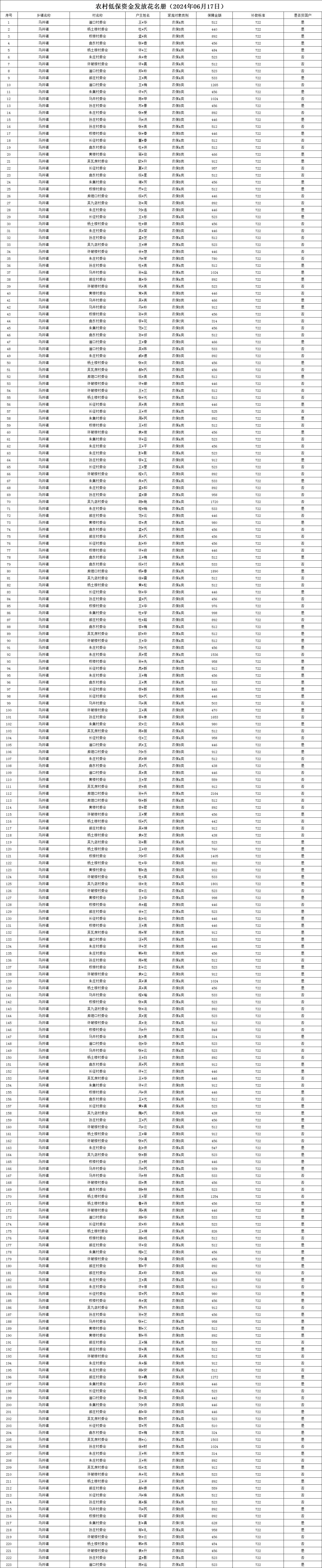 【低?!?024年6月蕭縣馬井鎮(zhèn)農(nóng)村低保資金發(fā)放花名冊