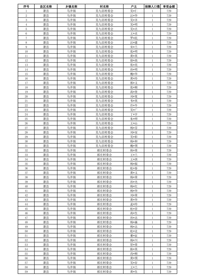 【特困】蕭縣馬井鎮(zhèn)2024年9月特困資金發(fā)放花名冊(cè)