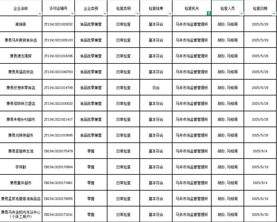 馬井鎮(zhèn)2025年第二季度食品生產(chǎn)經(jīng)營監(jiān)督檢查