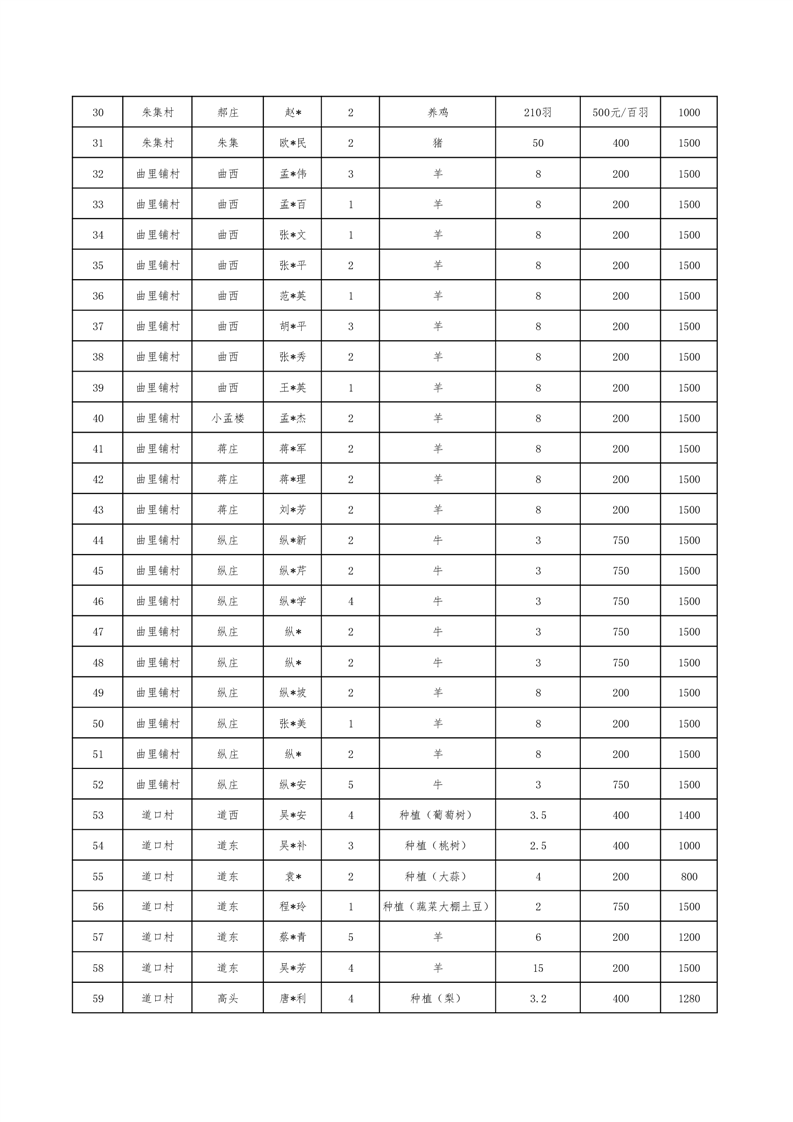 馬井鎮(zhèn)2025年特色種養(yǎng)殖補貼到戶項目花名冊