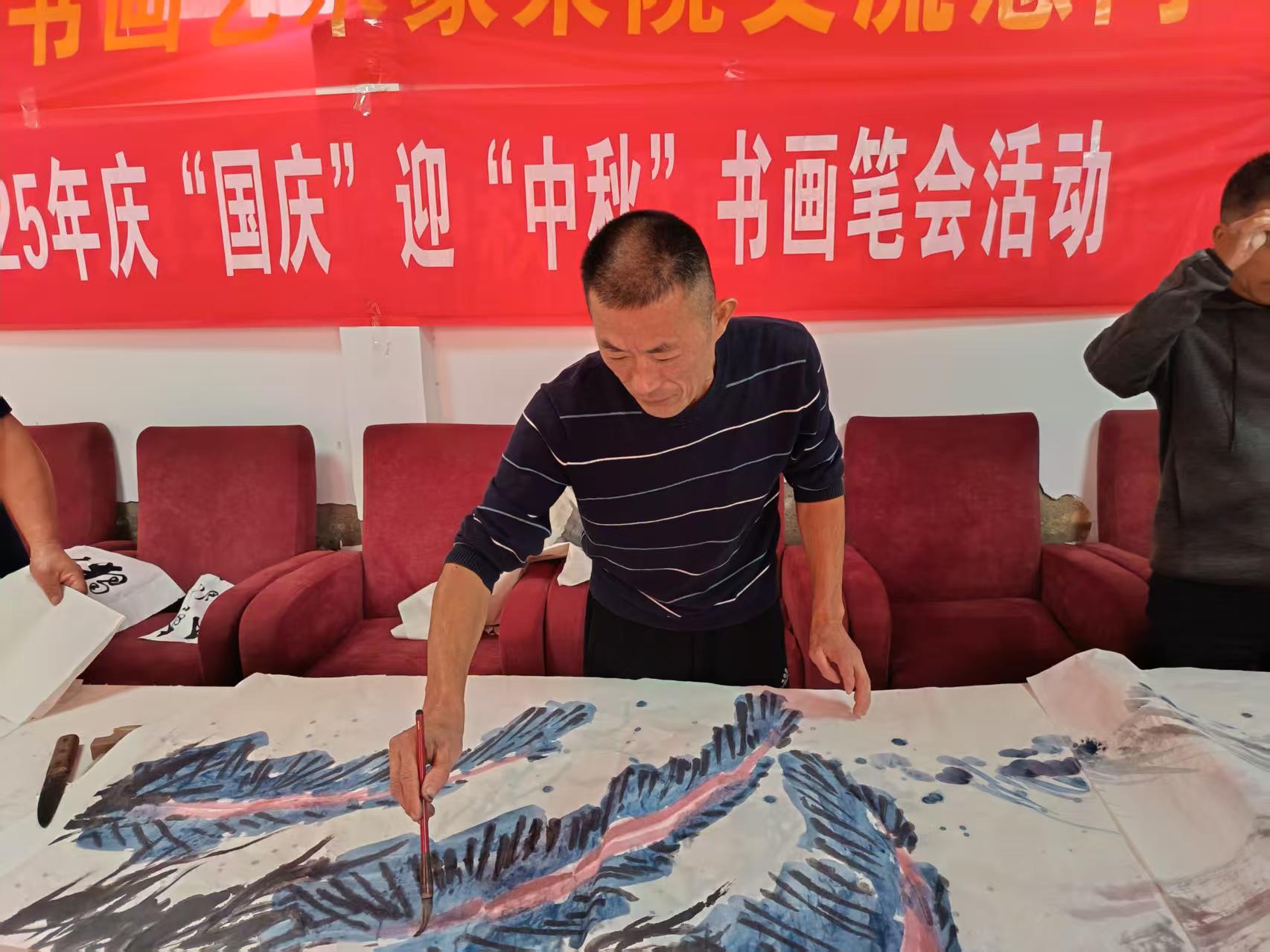 ,誠(chéng)邀本地書(shū)畫(huà)藝術(shù)家共赴盛會(huì)?;顒?dòng)以 “國(guó)泰民安?月滿家園” 為主題,聚焦藝術(shù)交流與技藝切磋。?圍繞國(guó)慶盛景、中秋民俗共創(chuàng)作品,實(shí)時(shí)交流筆法、構(gòu)圖技巧;資深藝術(shù)家分享書(shū)體運(yùn)筆、國(guó)畫(huà)寫(xiě)生等經(jīng)驗(yàn)。尾聲作品互評(píng)環(huán)節(jié),藝術(shù)家們從表現(xiàn)力、技法等維度互評(píng)佳作。?此次筆會(huì)不僅為藝術(shù)家搭建了技藝互鑒的橋梁,更以書(shū)畫(huà)為媒傳遞雙節(jié)溫情,助力中華優(yōu)秀傳統(tǒng)文化在基層傳承,豐富鄉(xiāng)鎮(zhèn)文化生活。