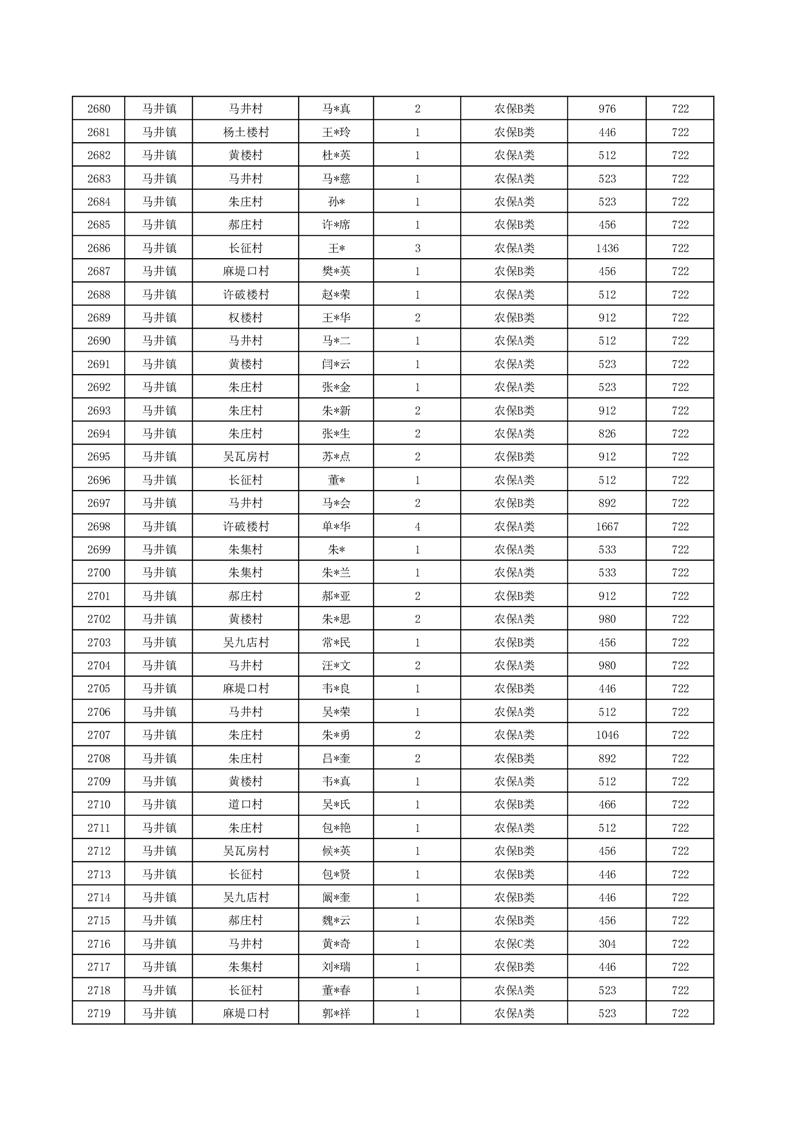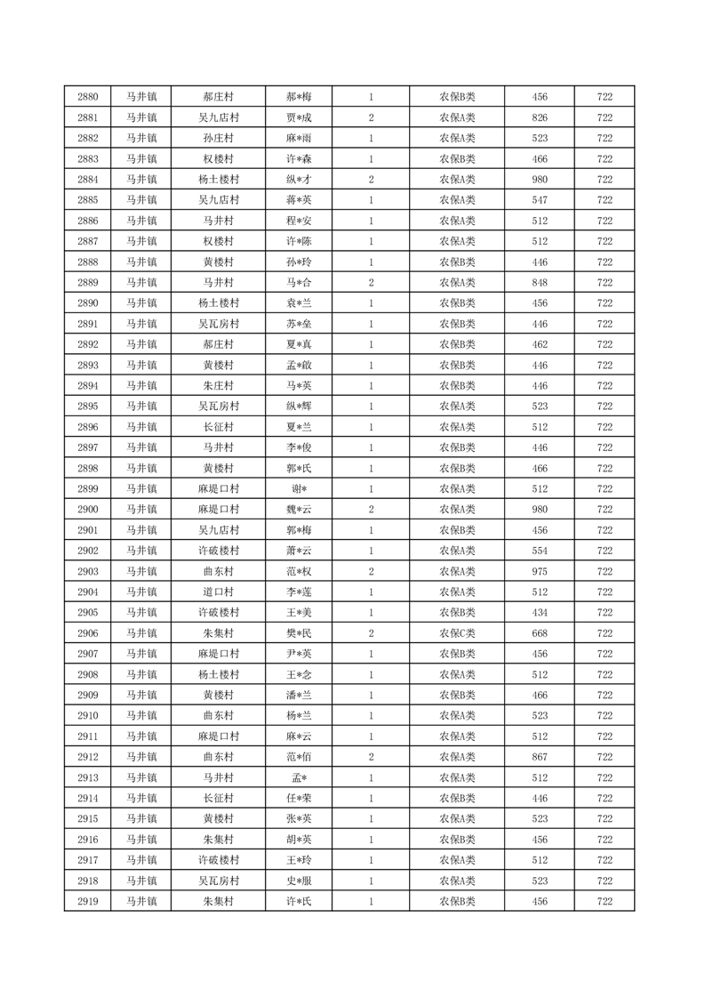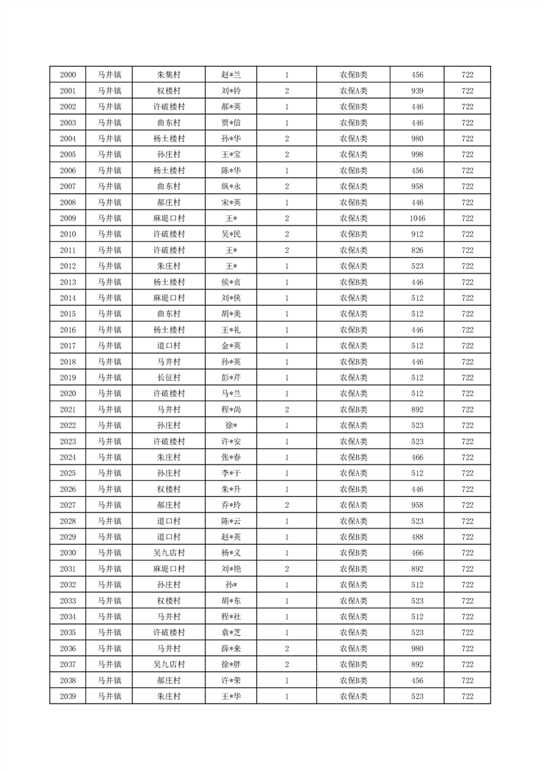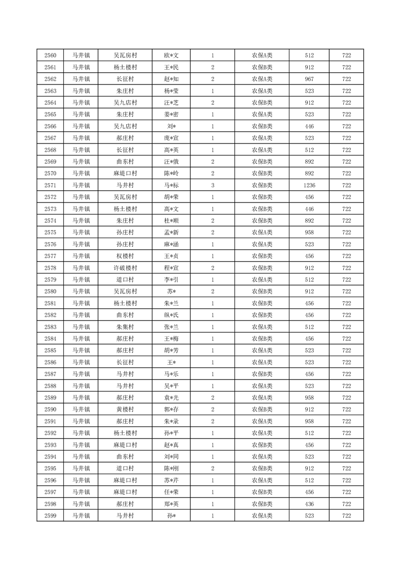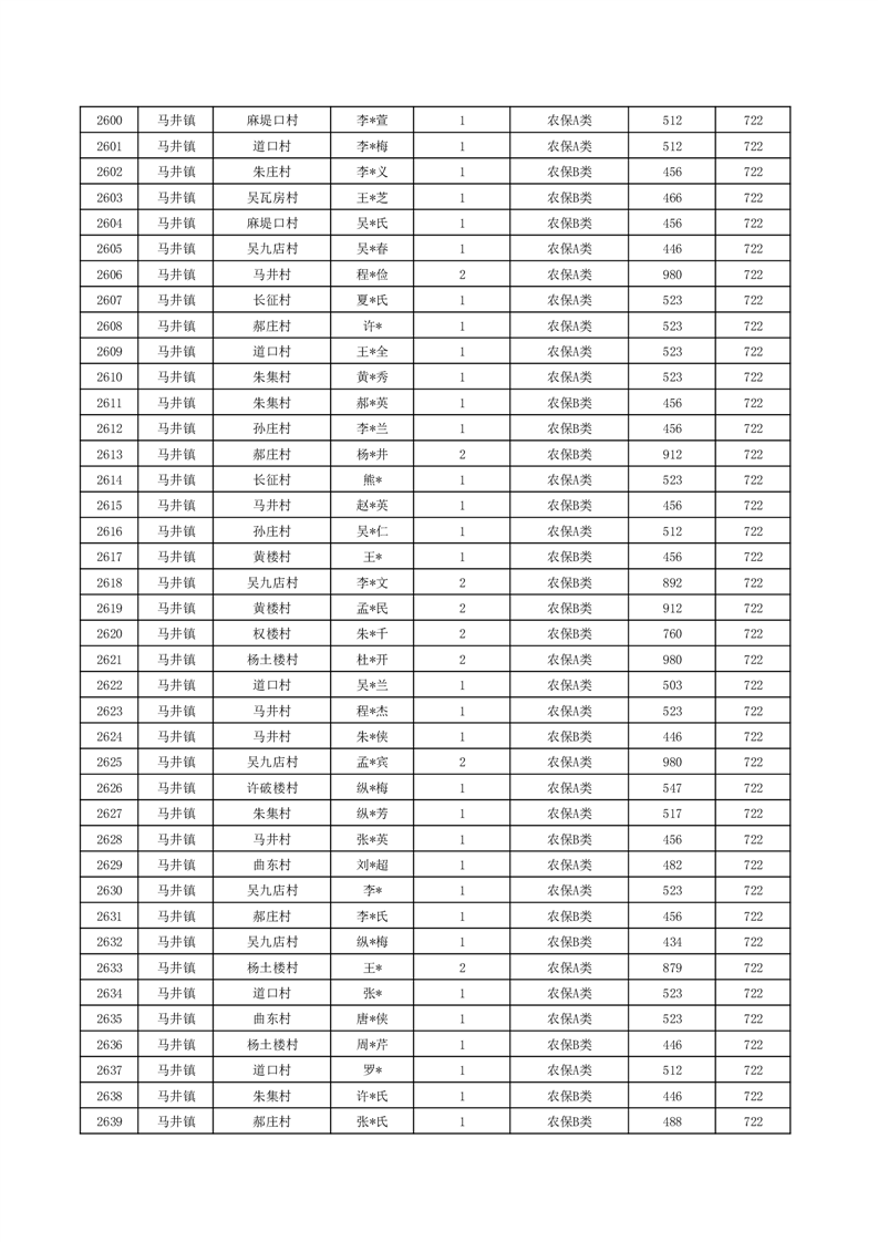 【低?!?025年9月蕭縣馬井鎮(zhèn)農(nóng)村低保資金發(fā)放花名冊