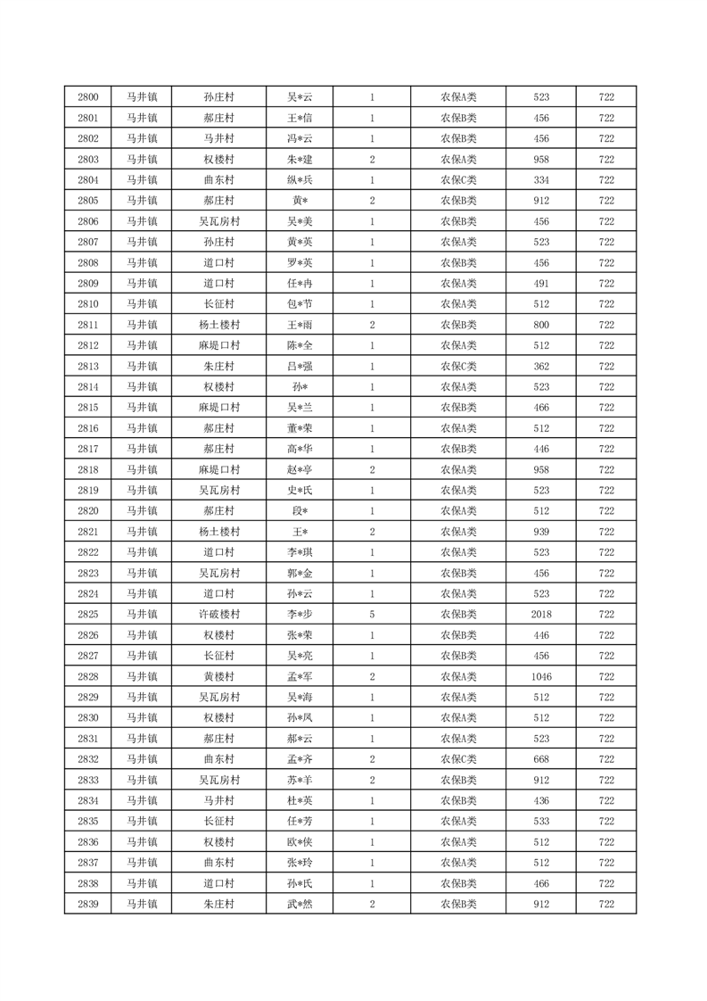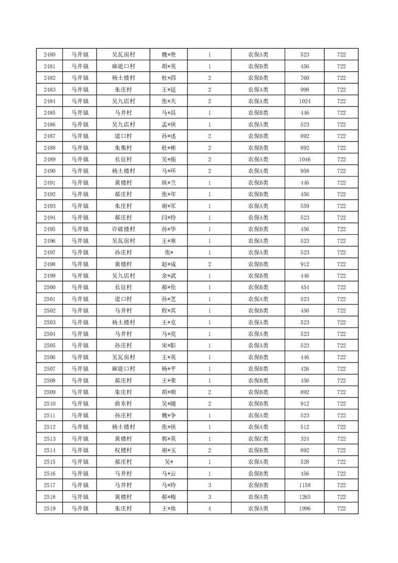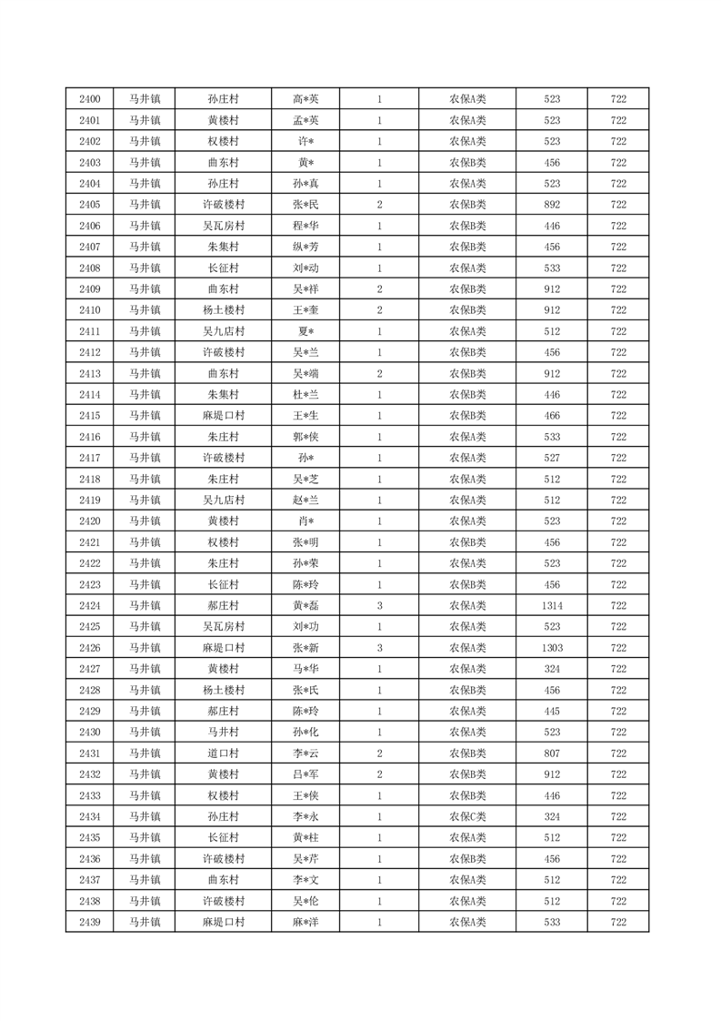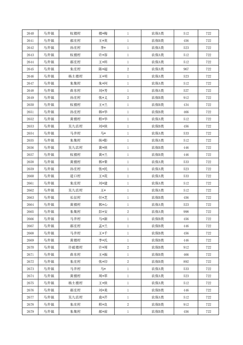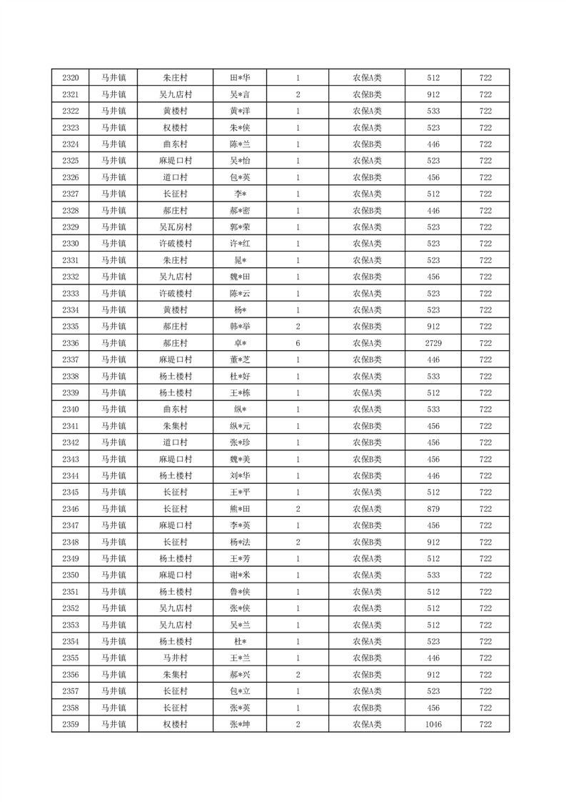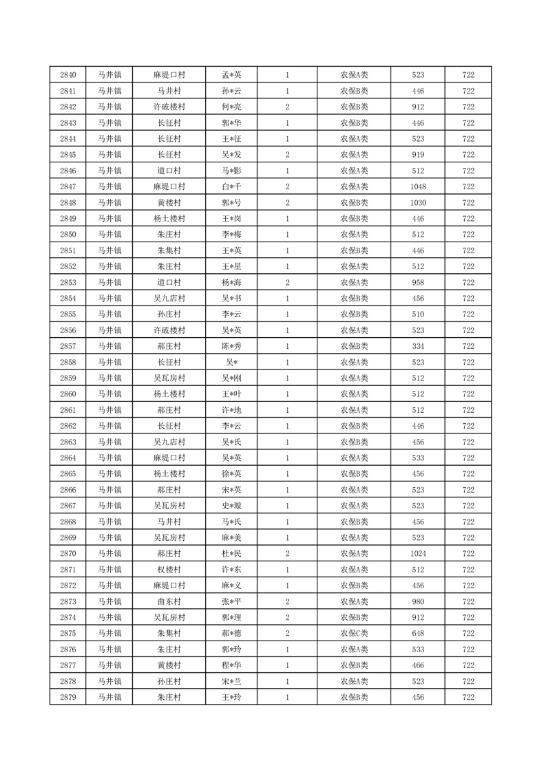 【低?!?025年9月蕭縣馬井鎮(zhèn)農(nóng)村低保資金發(fā)放花名冊