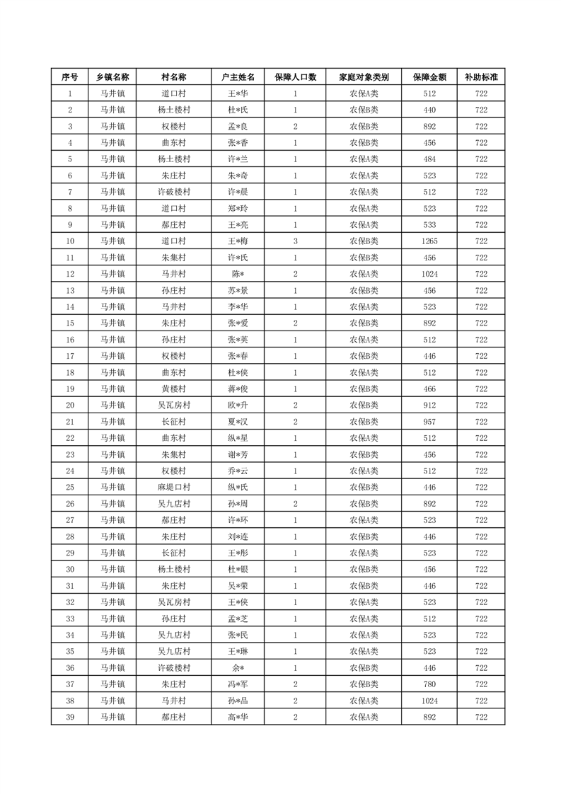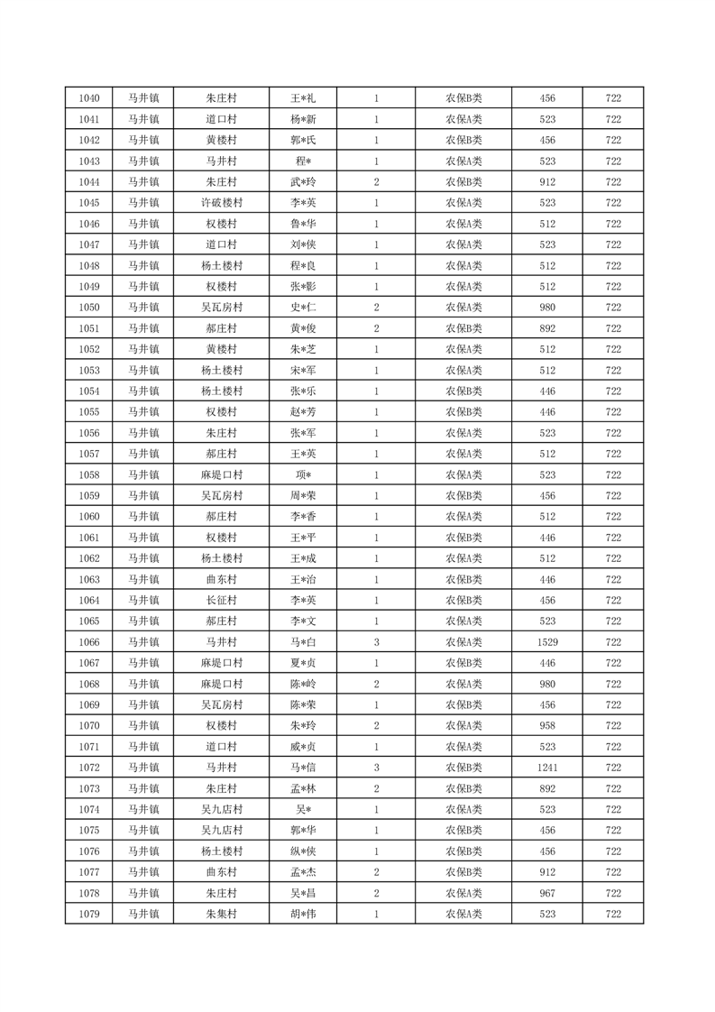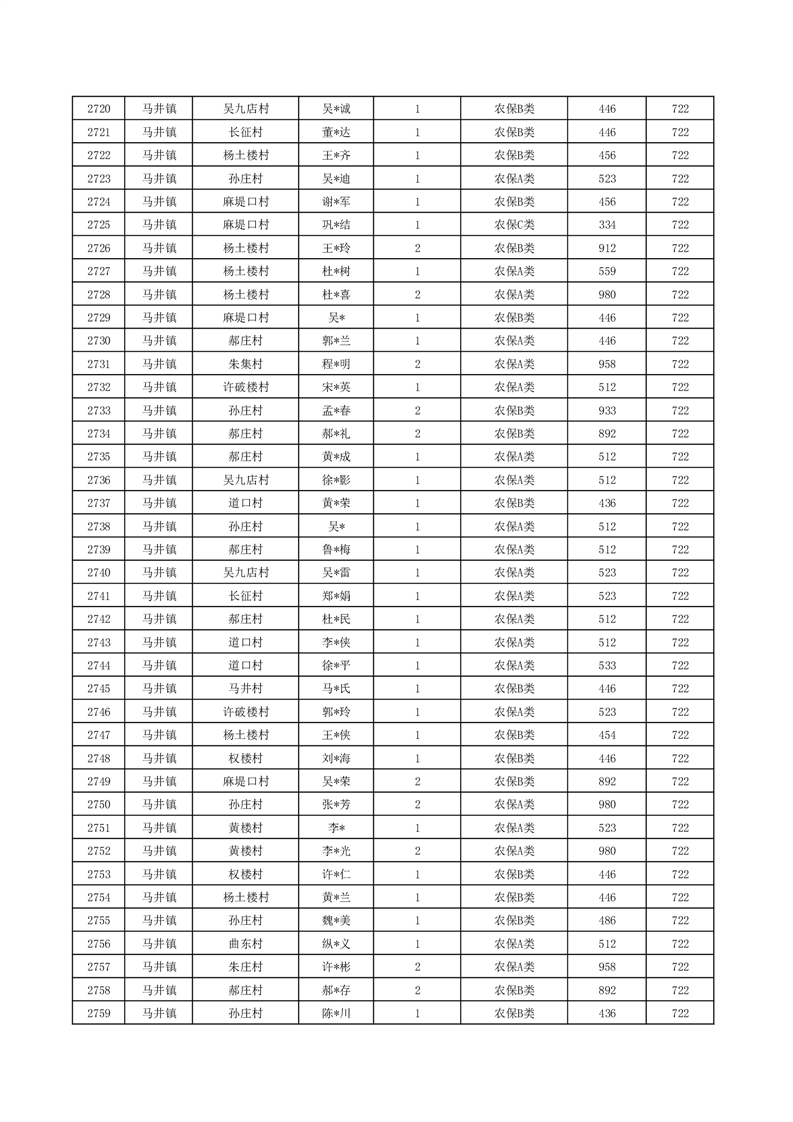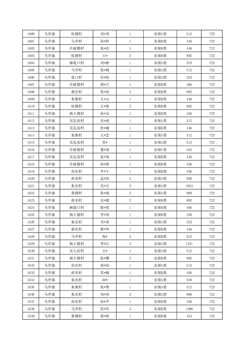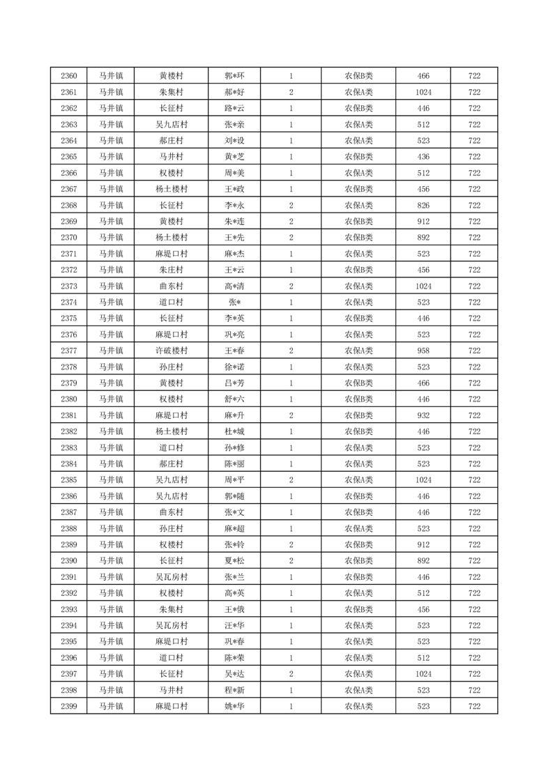 【低?!?025年9月蕭縣馬井鎮(zhèn)農(nóng)村低保資金發(fā)放花名冊