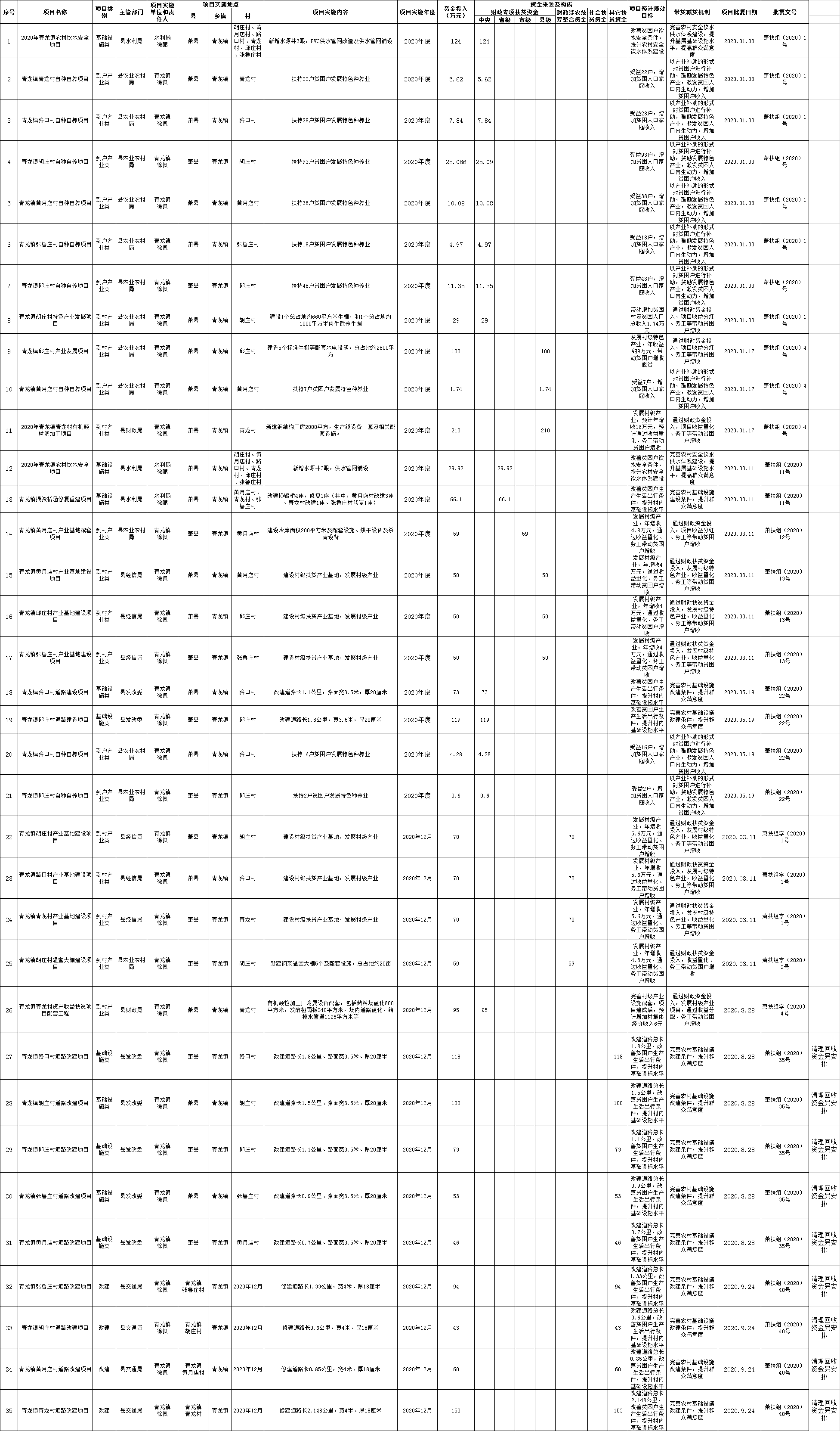 蕭縣青龍鎮(zhèn)2020年扶貧資金項(xiàng)目臺(tái)賬