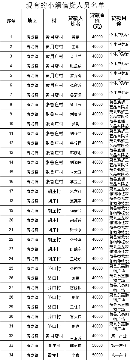 青龍鎮(zhèn)2021年現(xiàn)有小額信貸人員名單