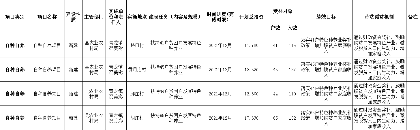 青龍鎮(zhèn)2021年第一批特色種養(yǎng)業(yè)項(xiàng)目計(jì)劃表