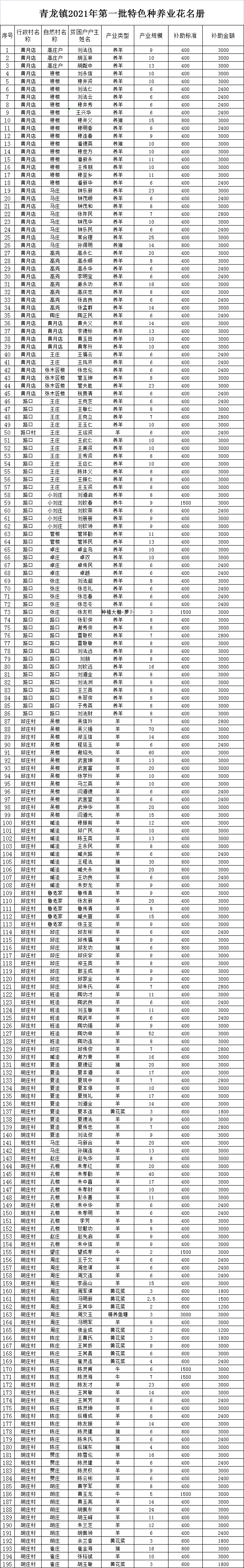 青龍鎮(zhèn)2021年第一批特色種養(yǎng)業(yè)分配名單