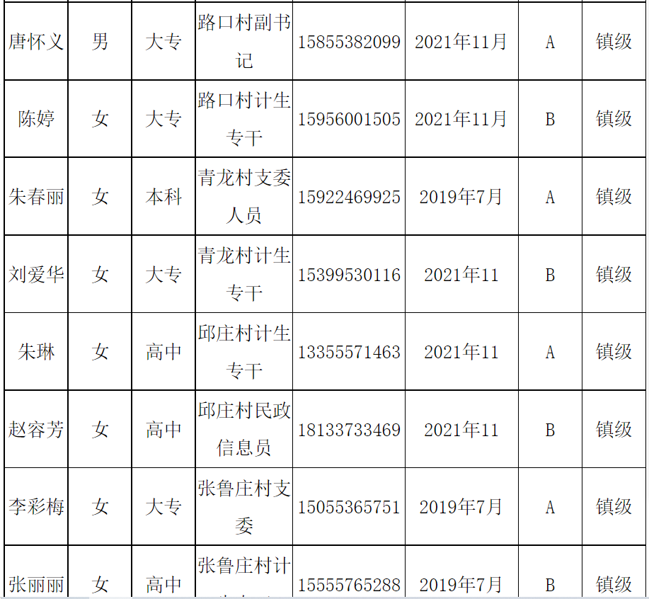 青龍集鎮(zhèn)鎮(zhèn)村災害信息員信息表