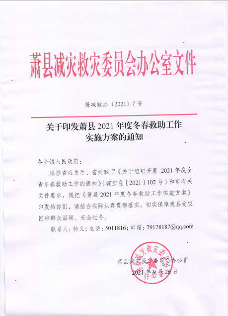 關(guān)于印發(fā)蕭縣2021年度冬春救助工作實(shí)施方案的通知 |