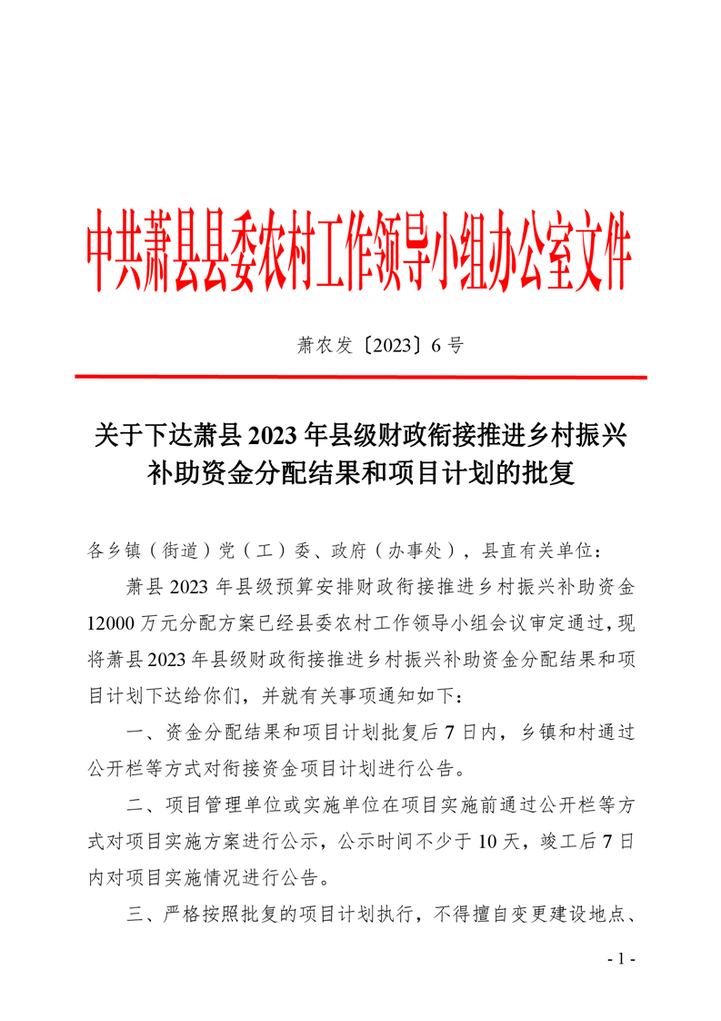 青龍集鎮(zhèn)關(guān)于下達(dá)蕭縣2023年縣級(jí)財(cái)政銜接推進(jìn)鄉(xiāng)村振興補(bǔ)助資金分配結(jié)果和項(xiàng)目計(jì)劃的批復(fù)
