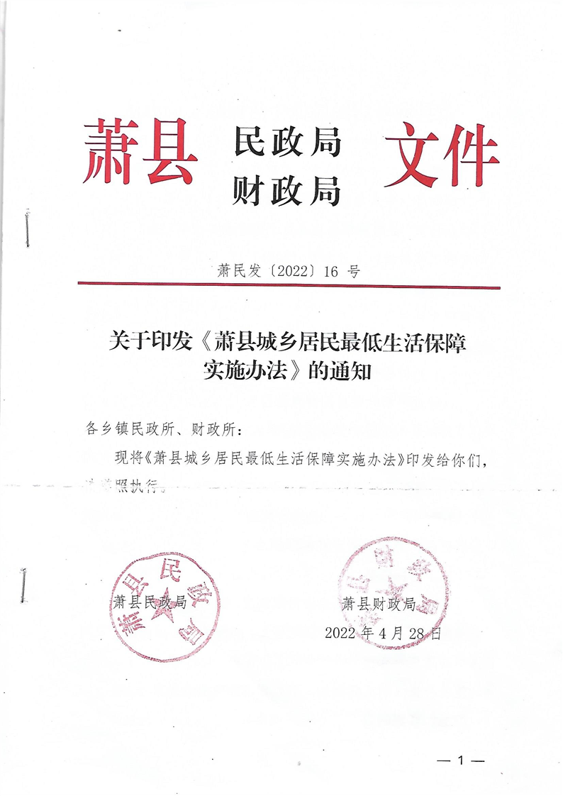 關(guān)于印發(fā)《蕭縣城鄉(xiāng)居民最低生活保障實施辦法》的通知(蕭民發(fā)【2022】16號)
