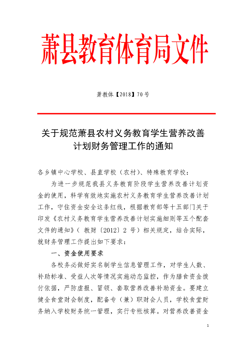 關于規(guī)范蕭縣農(nóng)村義務教育學生營養(yǎng)改善計劃財務管理工作的通知