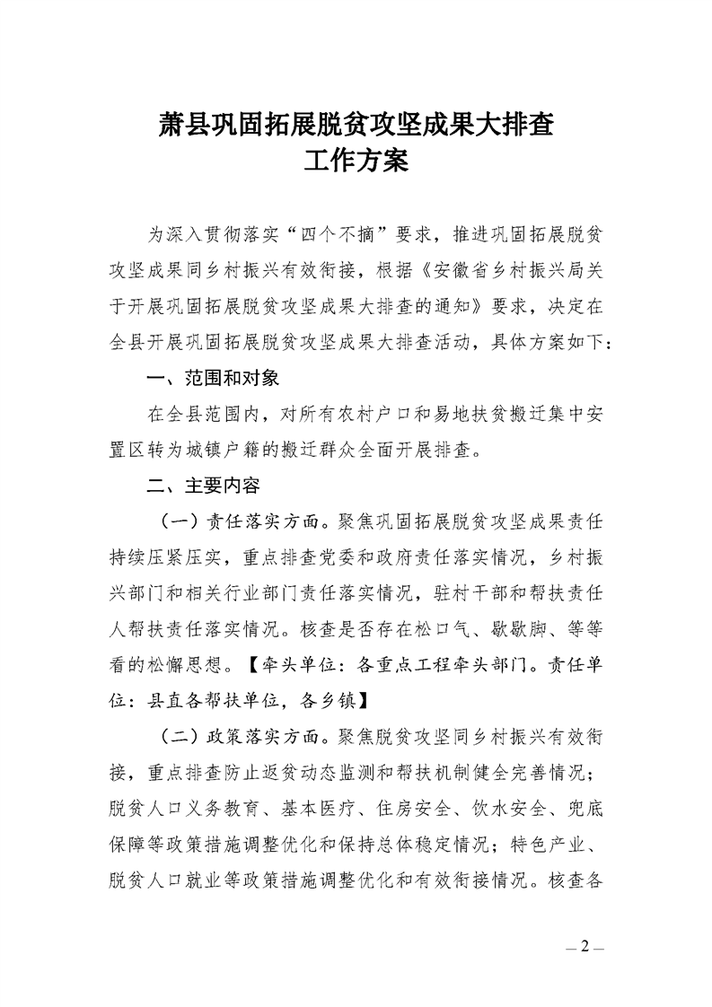 關(guān)于印發(fā)《蕭縣鞏固拓展脫貧攻堅成果大排查工作方案》的通知