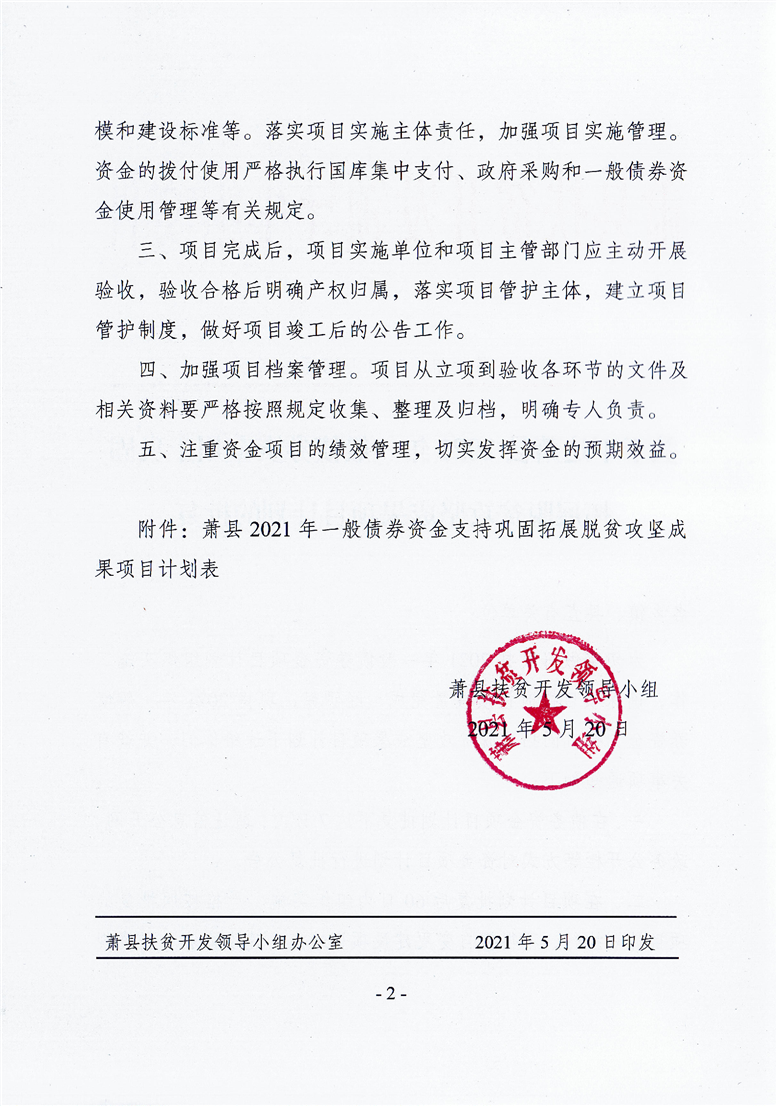 關(guān)于下達(dá)蕭縣2021年一般債券資金用于鞏固拓展脫貧攻堅(jiān)成果項(xiàng)目計(jì)劃的批復(fù)