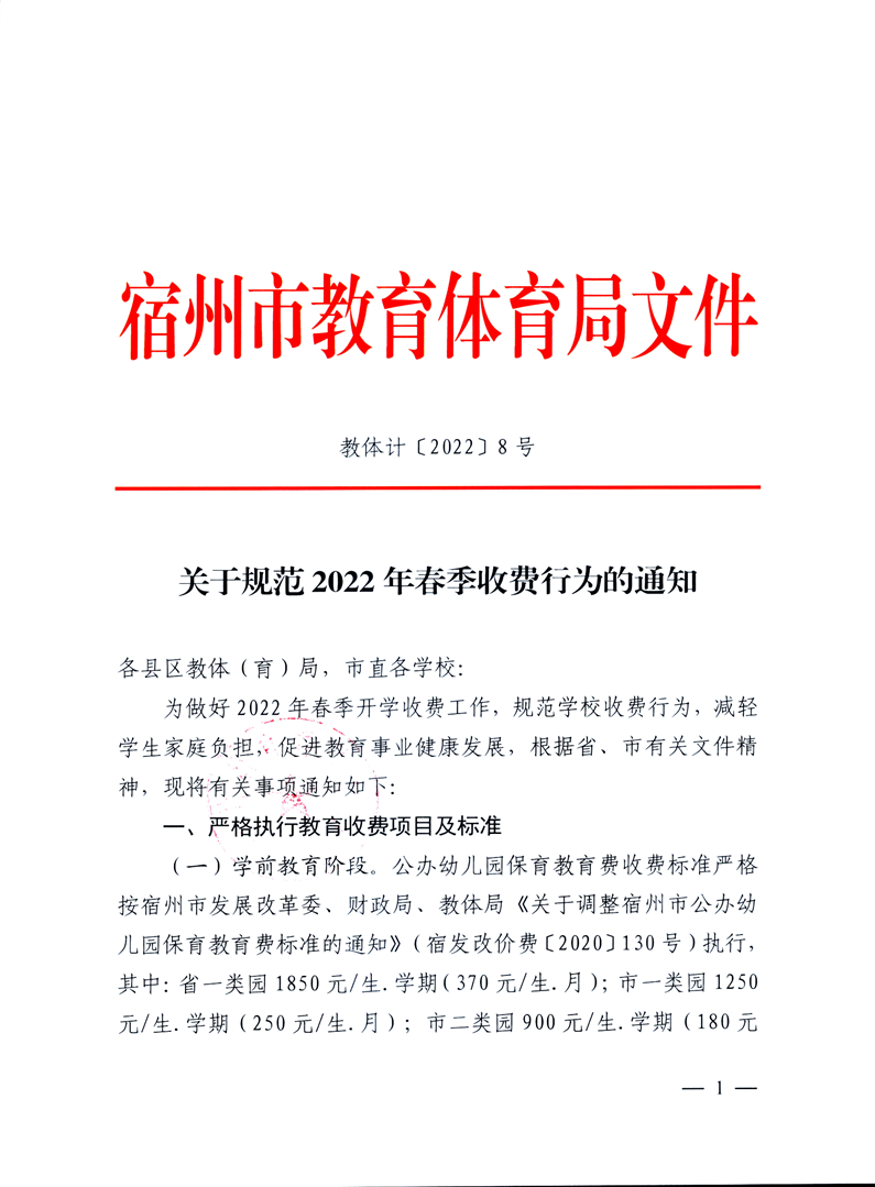 宿州市教育體育局關(guān)于規(guī)范2022年春季收費(fèi)行為的通知