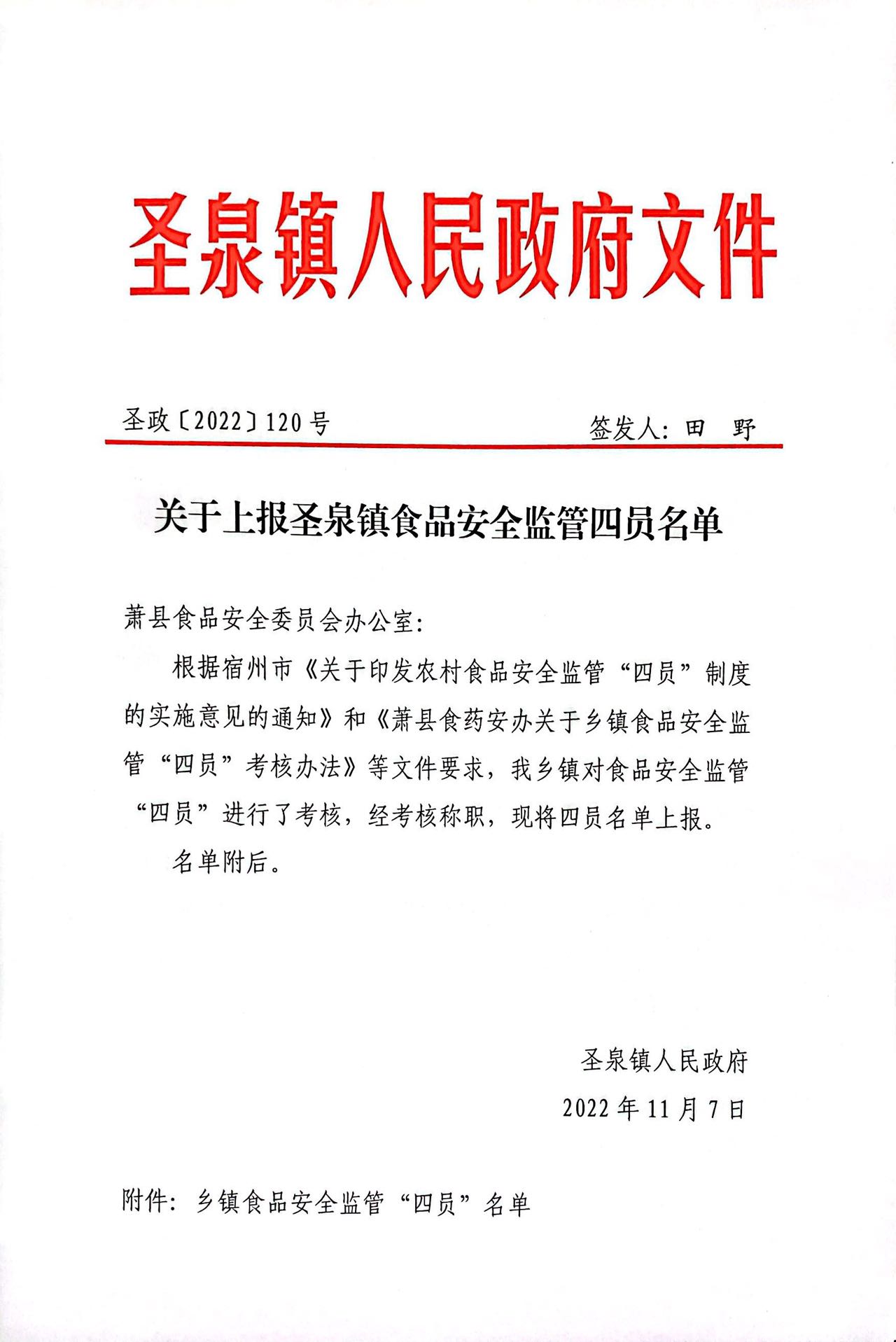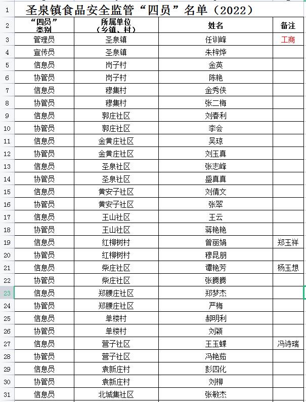 圣泉鎮(zhèn)食品安全監(jiān)管四員名單
