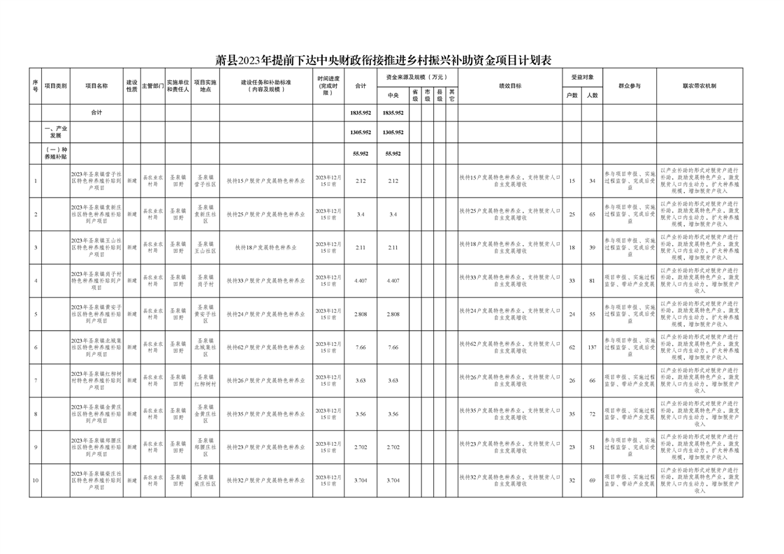 關(guān)于蕭縣2023年提前下達(dá)中央財(cái)政銜接推進(jìn)鄉(xiāng)村振興補(bǔ)助資金分配結(jié)果的公告(特色種養(yǎng))