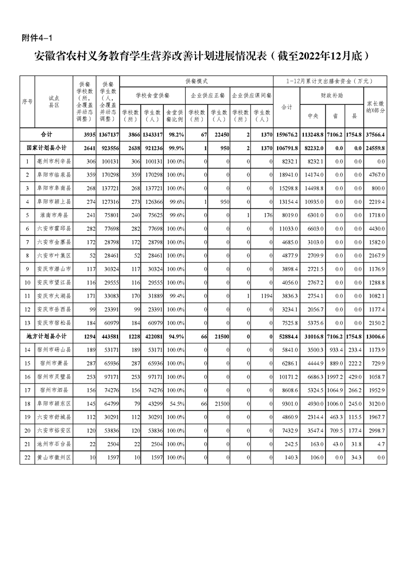 安徽省教育廳關(guān)于基礎(chǔ)教育項目建設(shè)及學(xué)生營養(yǎng)改善計劃等截至12月底進(jìn)展的簡要情況