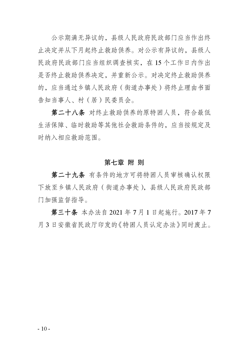 關(guān)于印發(fā)《安徽省特困人員認(rèn)定辦法》的通知(皖民社救字〔2021〕74號(hào))
