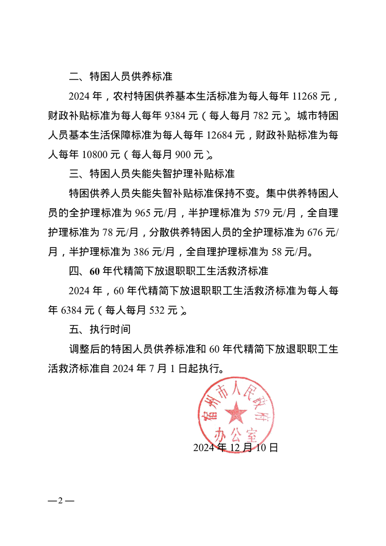 宿州市人民政府辦公室關于調(diào)整我市2024年最低生活保障標準和特困人員供養(yǎng)標準的通知(宿政辦秘〔2024〕36號)