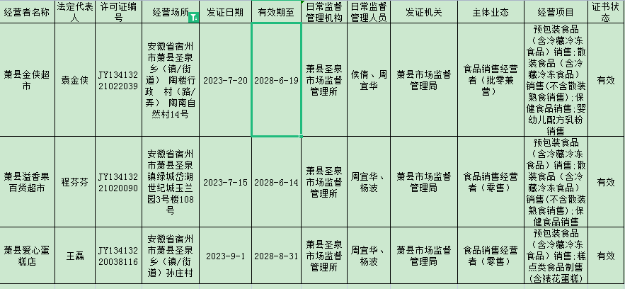 【備案信息】圣泉鎮(zhèn)2023年第三季度小餐飲、食品攤販備案情況