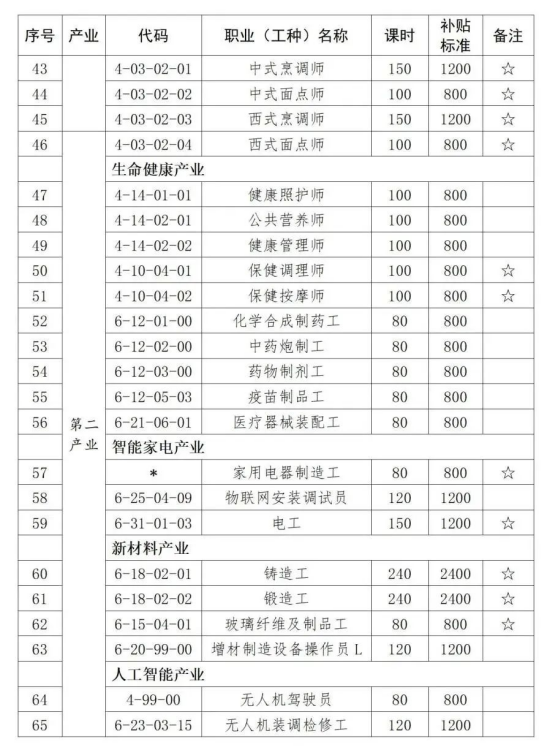 2.對象范圍:脫貧人口、城鄉(xiāng)未繼續(xù)升學初高中畢業(yè)生、農村轉移勞動者(含新生代農民工、退捕漁民)、城鎮(zhèn)失業(yè)人員、退役軍人、就業(yè)困難人員(含殘疾人等重點群體)。