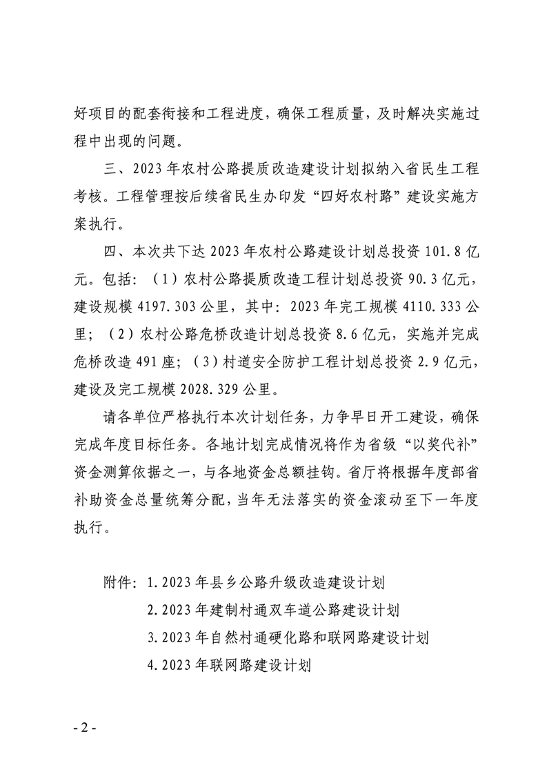 安徽省交通運輸廳關(guān)于下達2023年農(nóng)村公路建設計劃的通知