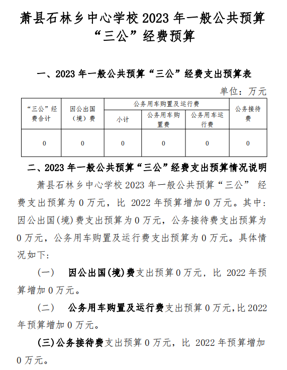蕭縣石林鄉(xiāng)中心學(xué)小2023年一般公共預(yù)算“三公”經(jīng)費(fèi)預(yù)算公開
