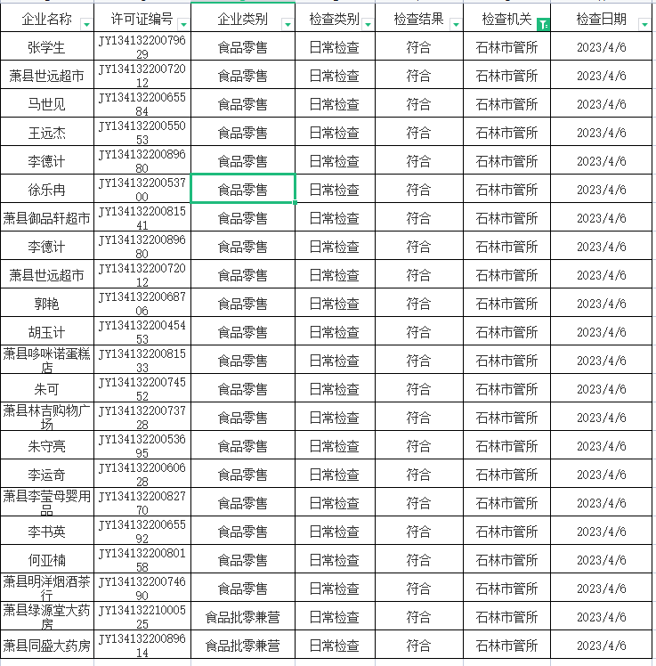 蕭縣石林鄉(xiāng)2023年4月食品生產(chǎn)經(jīng)營監(jiān)督檢查情況