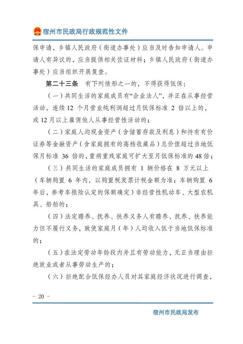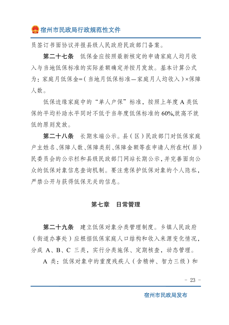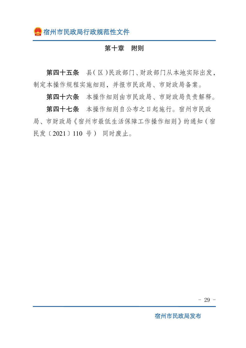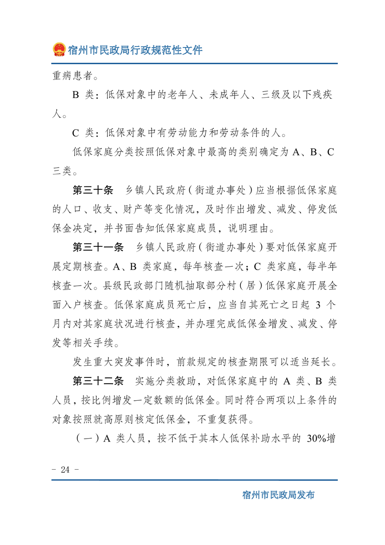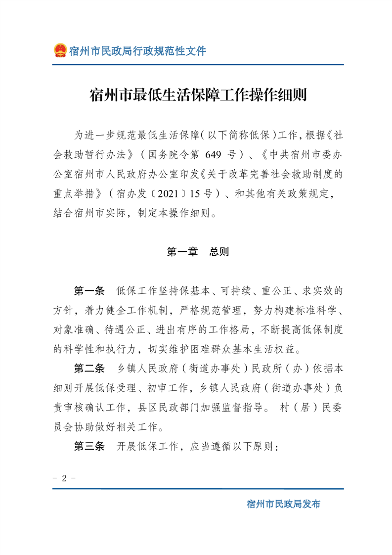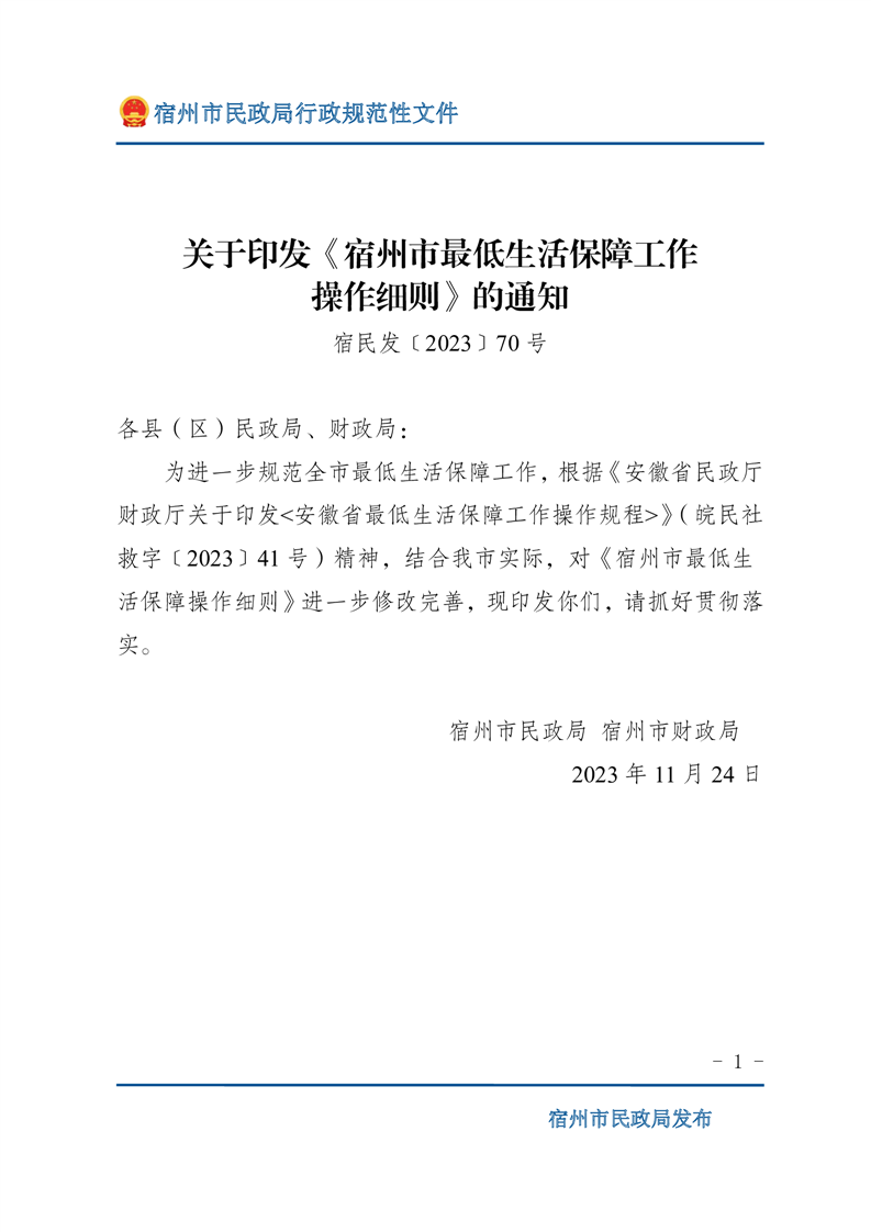 關(guān)于印發(fā)《宿州市最低生活保障工作操作細(xì)則》的通知(宿民發(fā)﹝2023﹞70號)