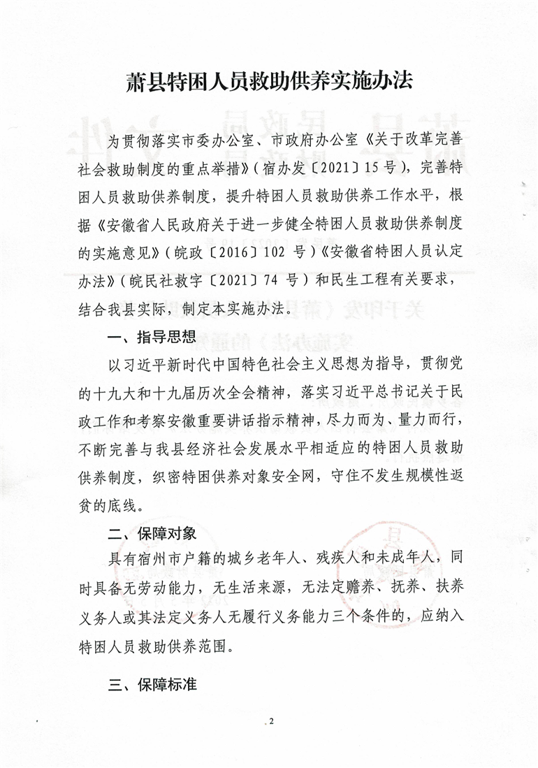 關(guān)于印發(fā)《蕭縣特困人員救助供養(yǎng)實(shí)施辦法》的通知(蕭民發(fā)〔2022〕19號)