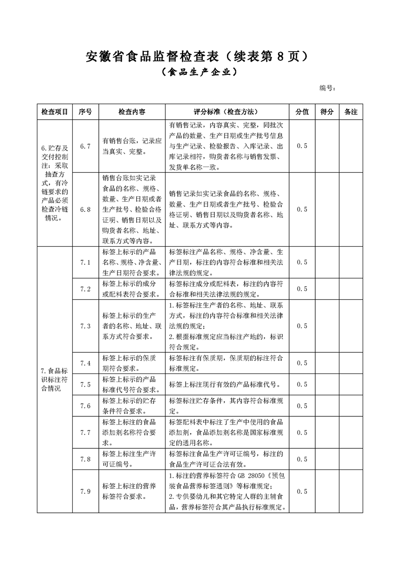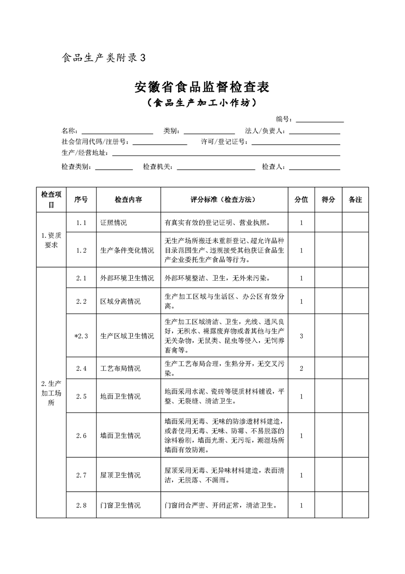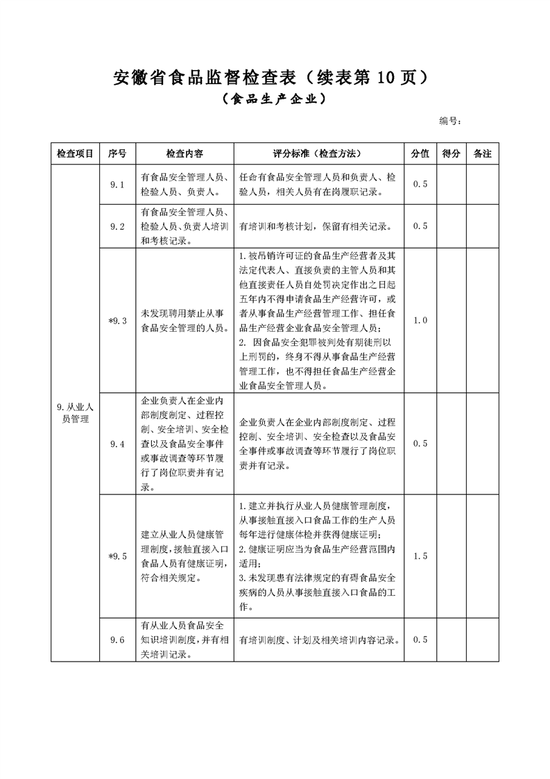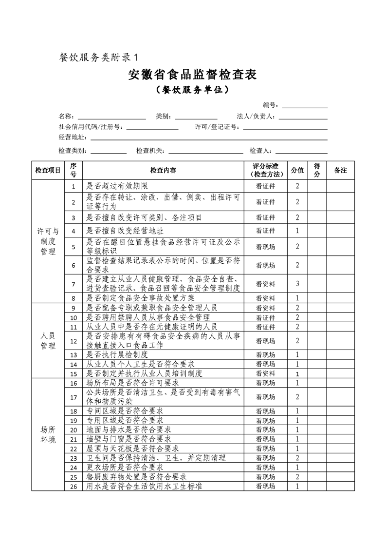 食品生產(chǎn)經(jīng)營(yíng)監(jiān)督檢查標(biāo)準(zhǔn)