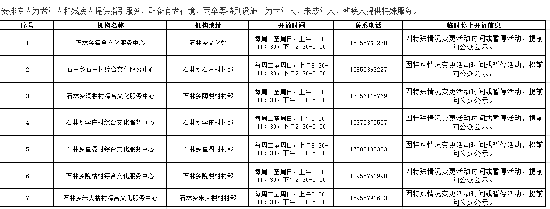 石林鄉(xiāng)特殊群體公共文化服務(wù)信息