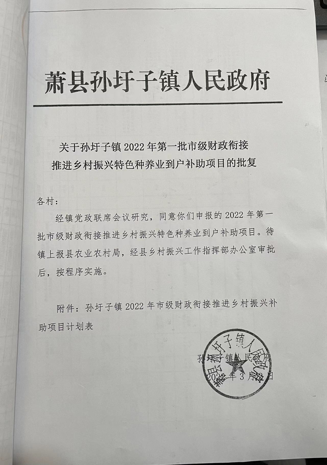 孫圩子鎮(zhèn)2022年特色種養(yǎng)項目補貼資金的批復