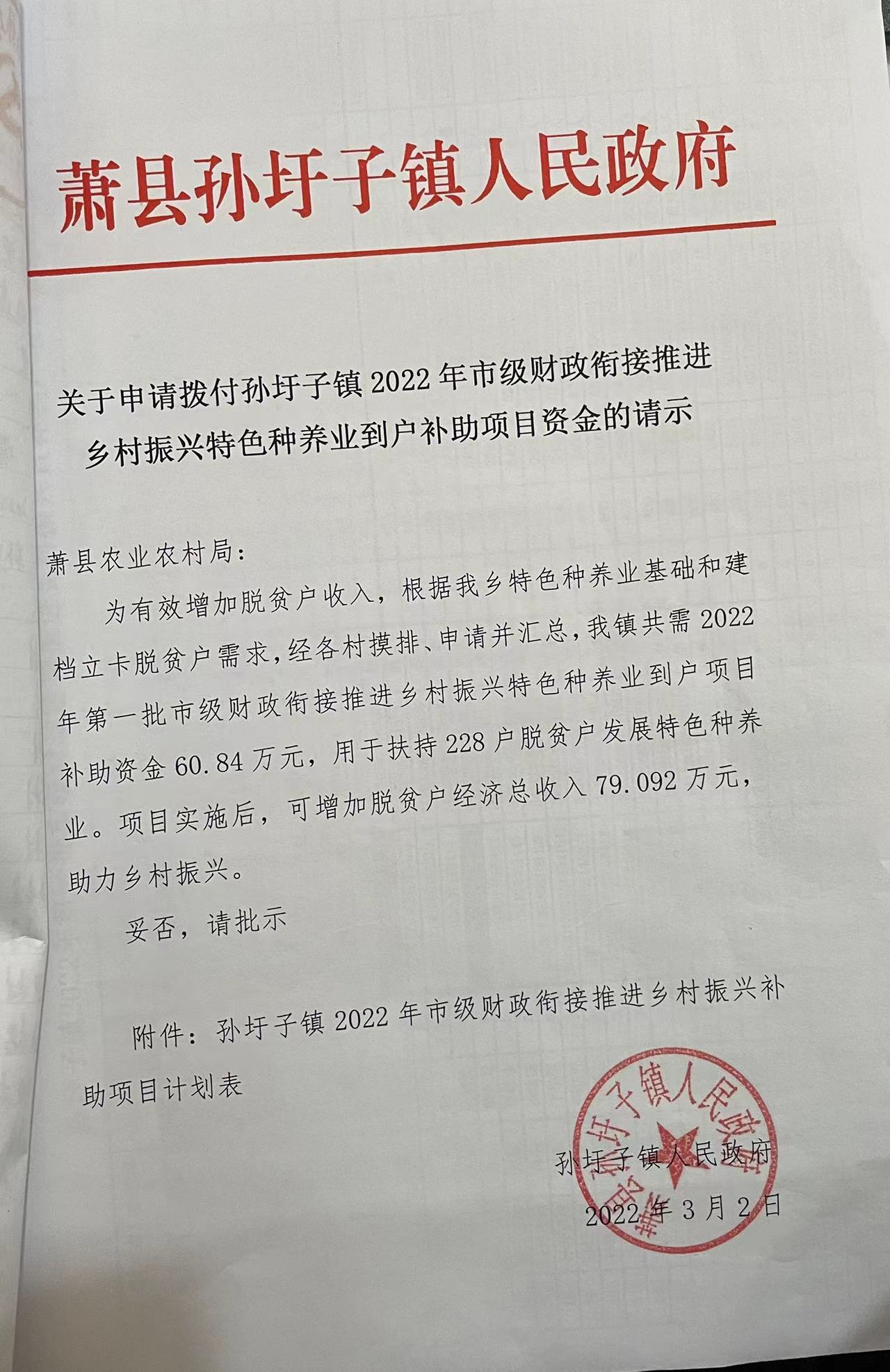 孫圩子鎮(zhèn)2022年鄉(xiāng)村振興特色種養(yǎng)產(chǎn)業(yè)項(xiàng)目資金請(qǐng)示 |