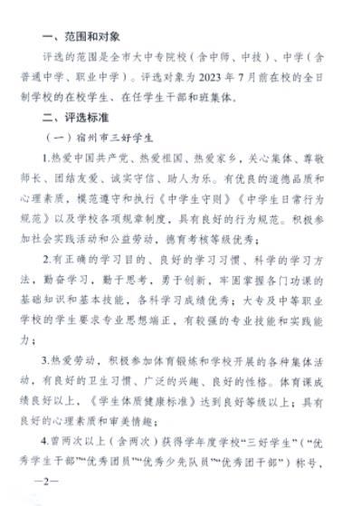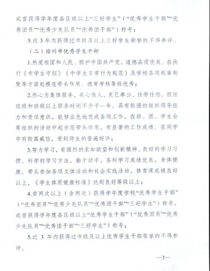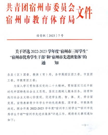 【學(xué)生評(píng)優(yōu)獎(jiǎng)勵(lì)】關(guān)于評(píng)選2022-2023學(xué)年度“宿州市三好學(xué)生”“宿州市優(yōu)秀學(xué)生干部”和“宿州市先進(jìn)班集體”的通知