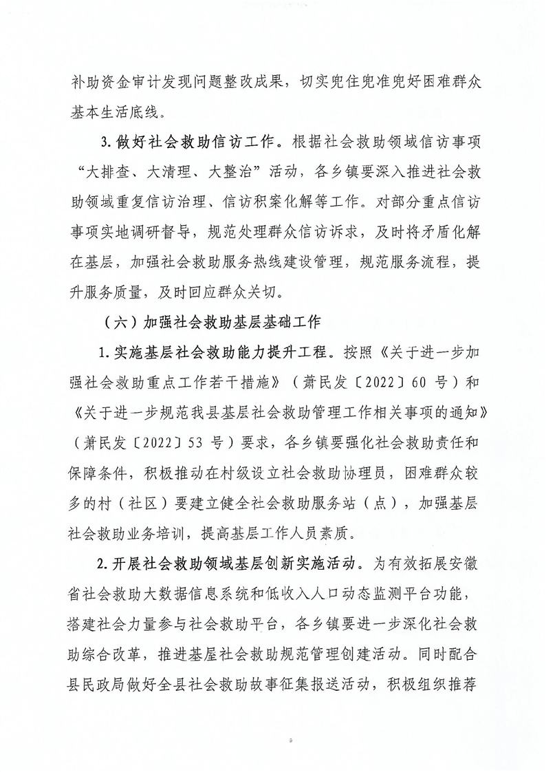【政策文件】印發(fā)《關(guān)于進一步落實全縣社會救助重點工作安排的通知》(蕭民函【2023】3號)
