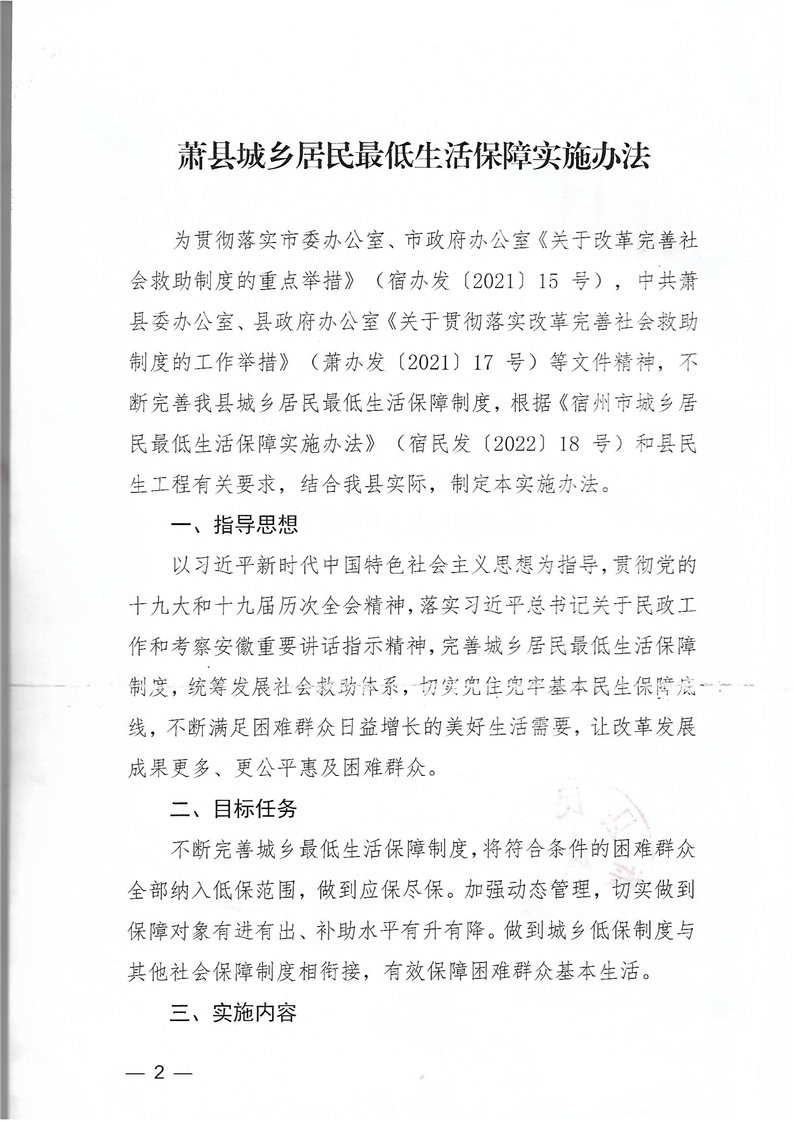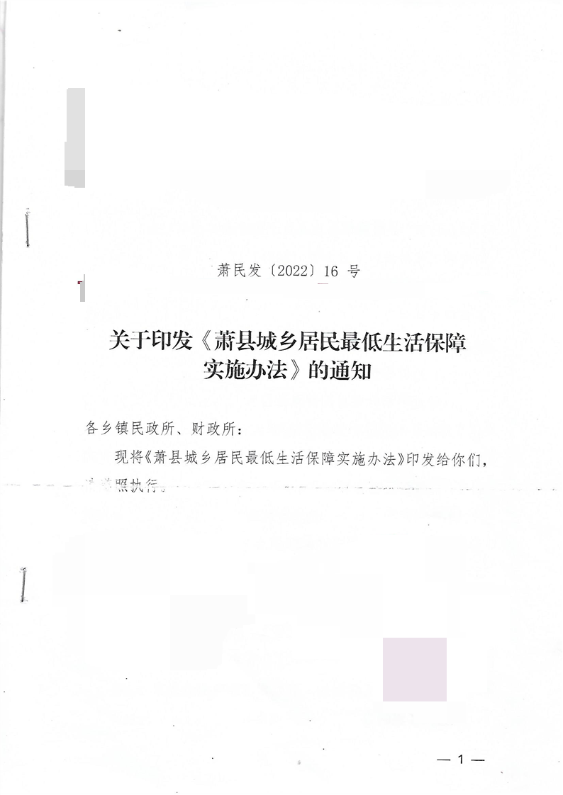 【政策文件】關(guān)于印發(fā)《蕭縣城鄉(xiāng)居民最低生活保障實施辦法》的通知(蕭民發(fā)【2022】16號)