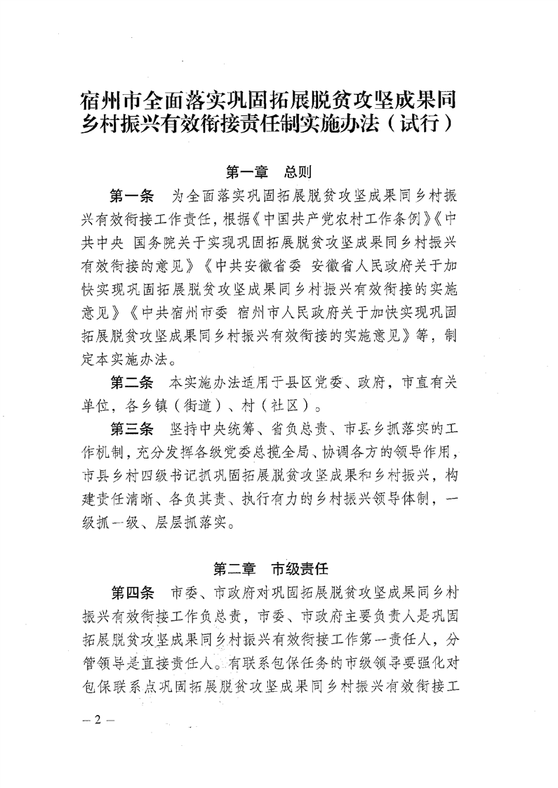 宿振興組〔2022〕1號宿州市全面落實鞏固拓展脫貧攻堅成果同鄉(xiāng)村振興有效銜接責(zé)任制實施辦法(試行)