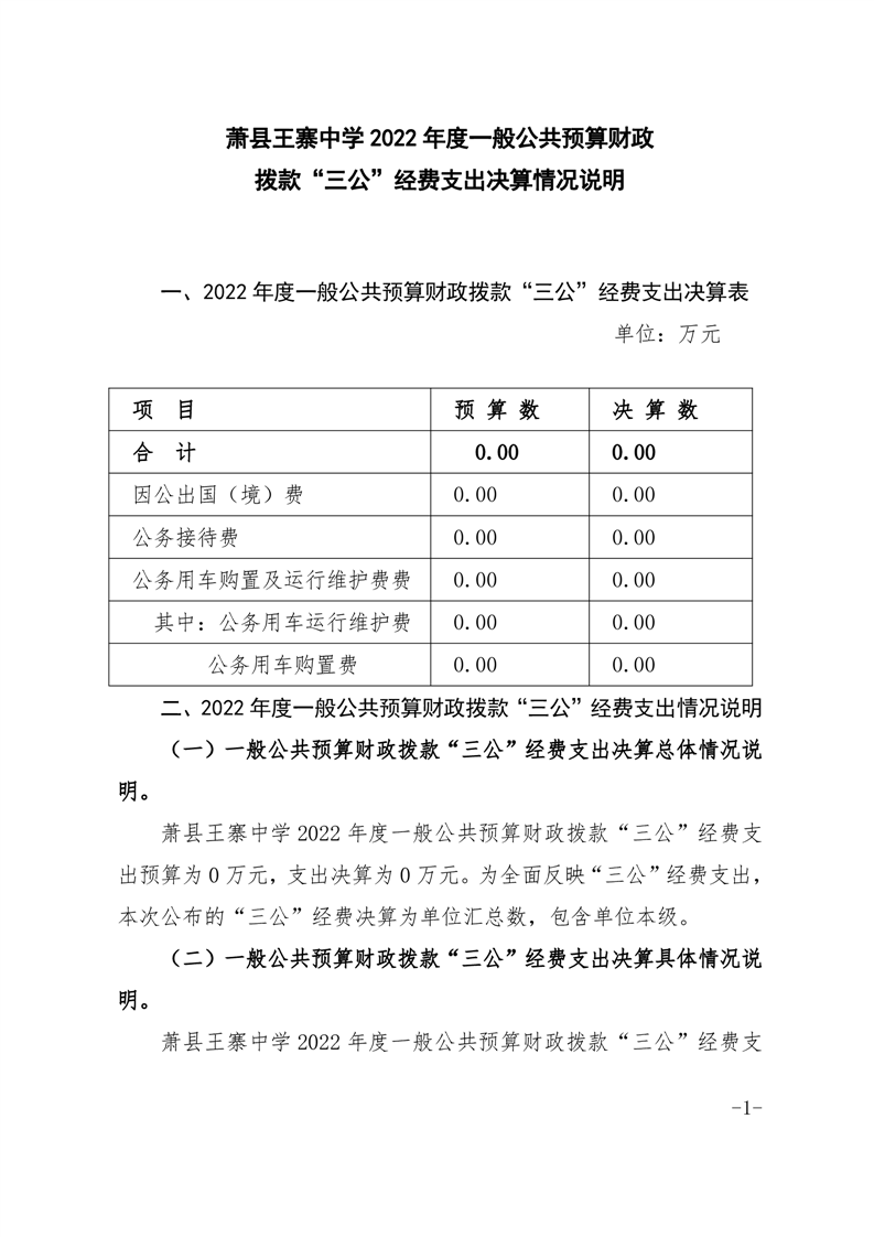 【年度決算信息】蕭縣王寨鎮(zhèn)中心學(xué)校2022年度一般公共預(yù)算財(cái)政撥款“三公”經(jīng)費(fèi)支出決算