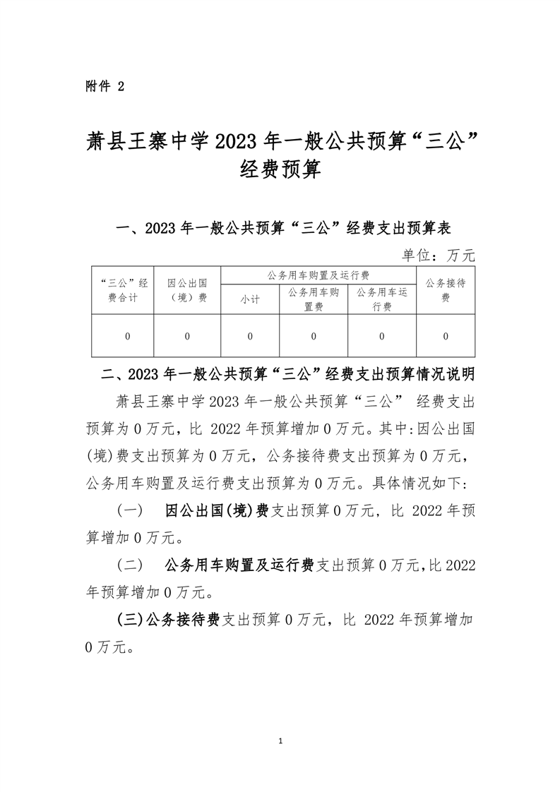 【年度預(yù)算信息】蕭縣王寨鎮(zhèn)中心學(xué)校2022年一般公共預(yù)算“三公”經(jīng)費(fèi)預(yù)算