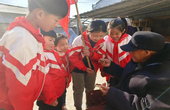 12月1日,蕭縣王寨鎮(zhèn)戴柿園小學(xué)少先隊(duì)的部分少先隊(duì)員走進(jìn)老革命家郭吉宣的住處。郭吉宣老人現(xiàn)年95歲,1950參加了朝鮮戰(zhàn)爭(zhēng)。在交流中,少先隊(duì)員們了解到了老人的戰(zhàn)斗經(jīng)歷和生活情況,聽(tīng)到了許多關(guān)于老戰(zhàn)士們?cè)趹?zhàn)場(chǎng)上英勇奮斗、不畏犧牲的故事,感受到了他們?yōu)樽鎳?guó)和人民所作出的貢獻(xiàn)。